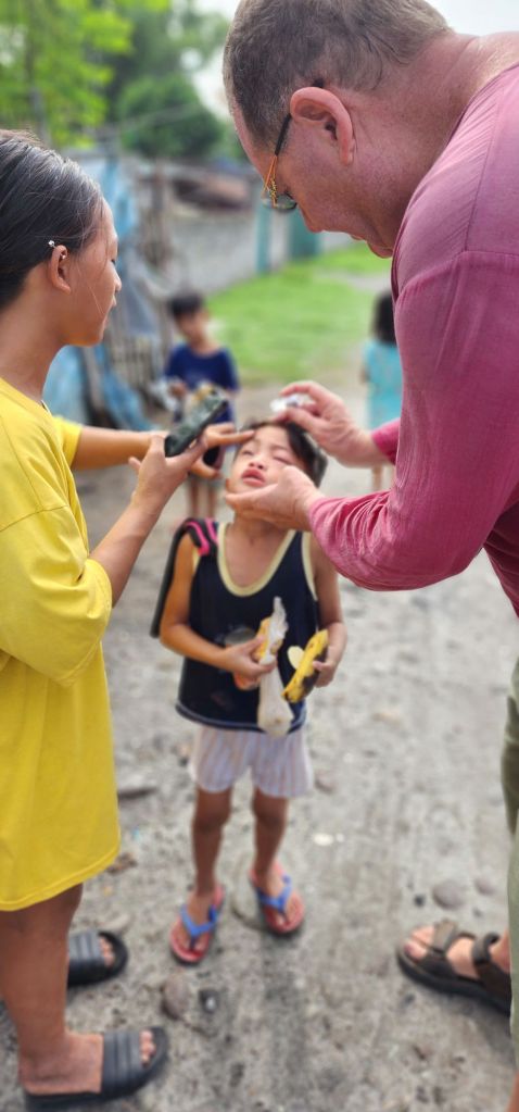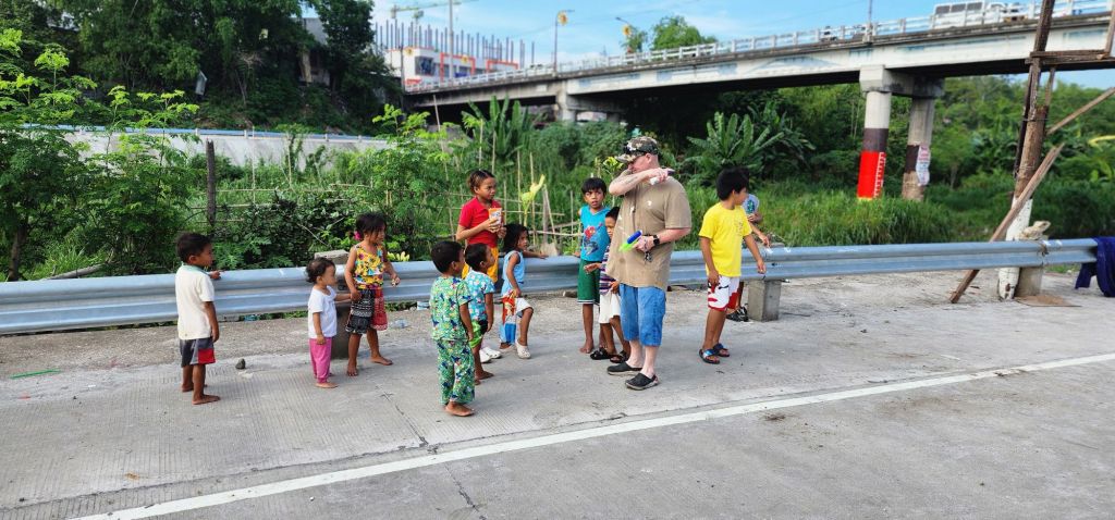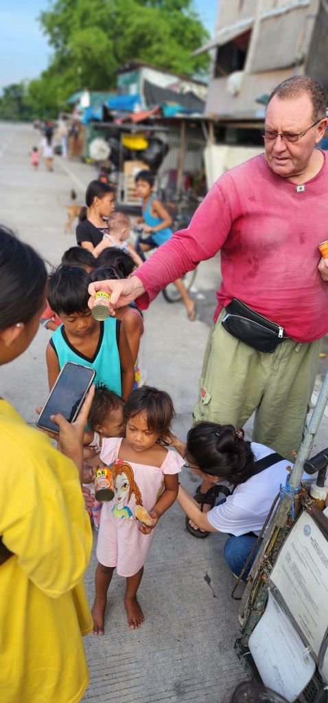Immediately following service, we headed up to Angeles City to help with the Childrens feeding program run by a retired London firefighter (David McCready). The kids in the slum areas, along the Balibago Creek, know him as “Banana Man”.