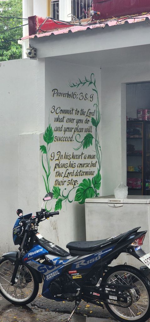 Also, while waiting for our bus back down to Manila, I saw this little yellow sticker on the wall of a merchant’s kiosk… only in the Philippines 🇵🇭 will you find bible verses everywhere you go. Praise be to God.